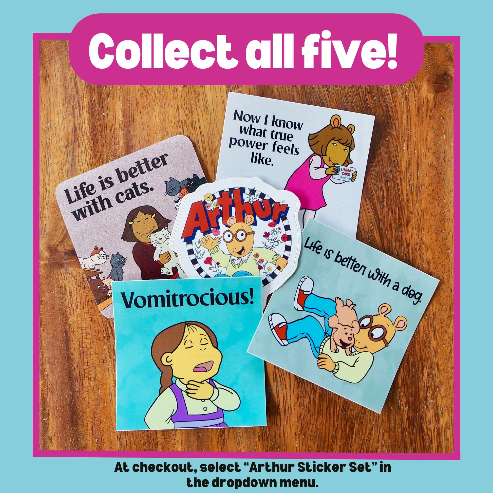 This Arthur sticker is sure to bring you back to your childhood. It’s made of coated white plastic and has an adhesive backside. It his about as thick as cardstock. This makes it perfect for smooth flat surfaces (like water bottles, laptops, journals, windows etc.). It’s measurements are 2.5 inches by 3 inches. Check out all of the images in the listing to see how this size compares with a permanent marker.