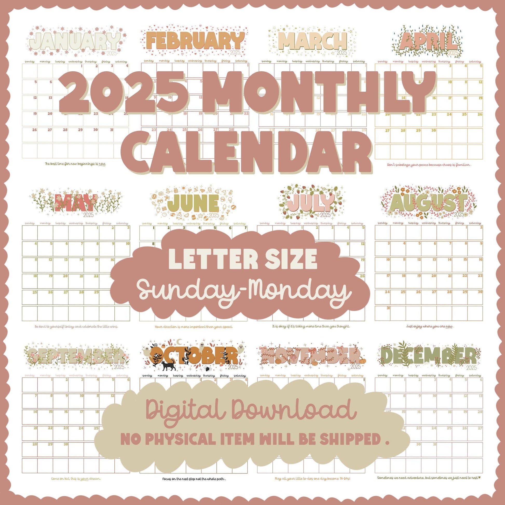 Floral & Earthy 2025 8.5 x 11 Printable Calendar