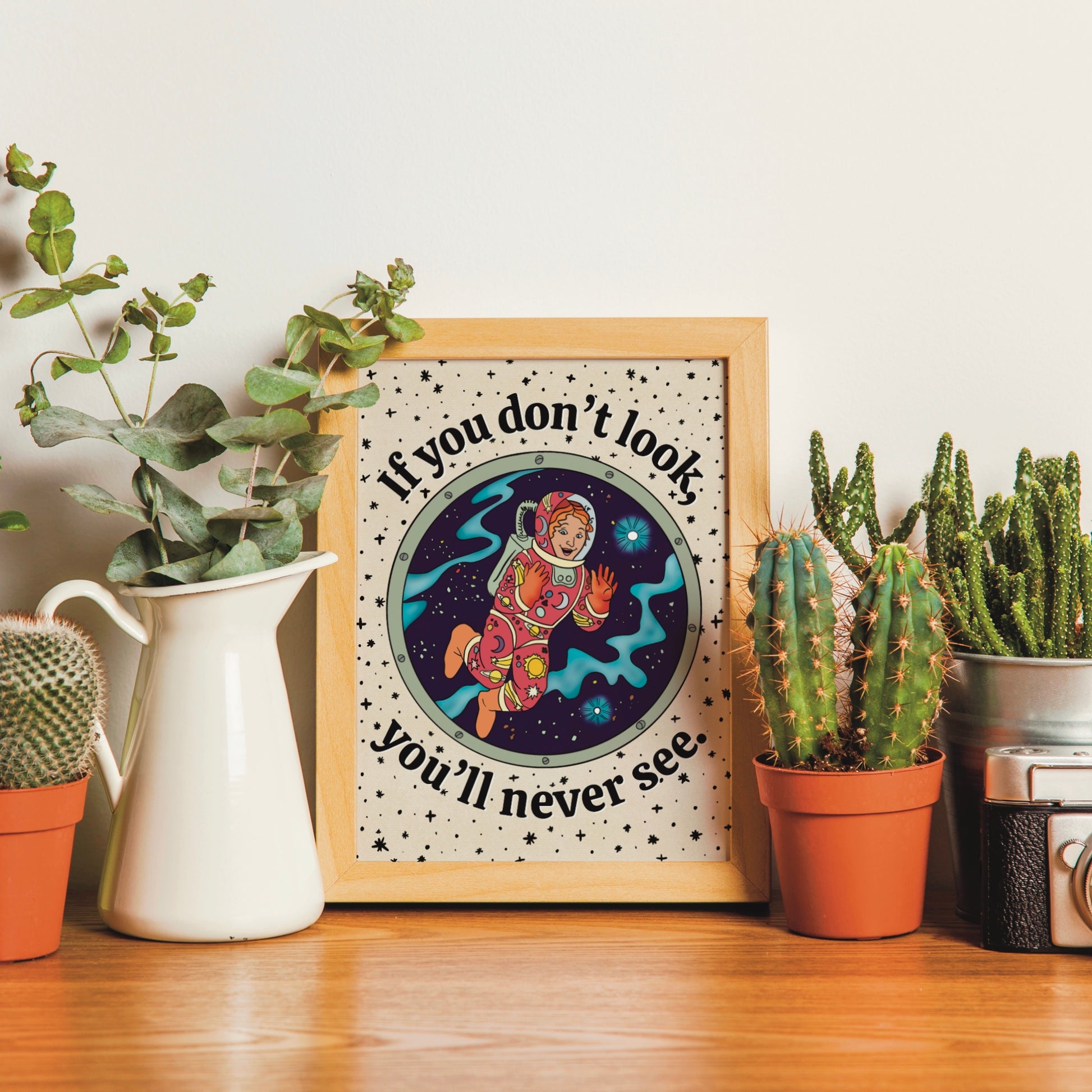 Embark on an interstellar journey with the Ms. Frizzle "If you don't look, you'll never see" digital print! Ms. Frizzle said it best so let this poster be a reminder to always keep your eyes open to the wonders of the universe.