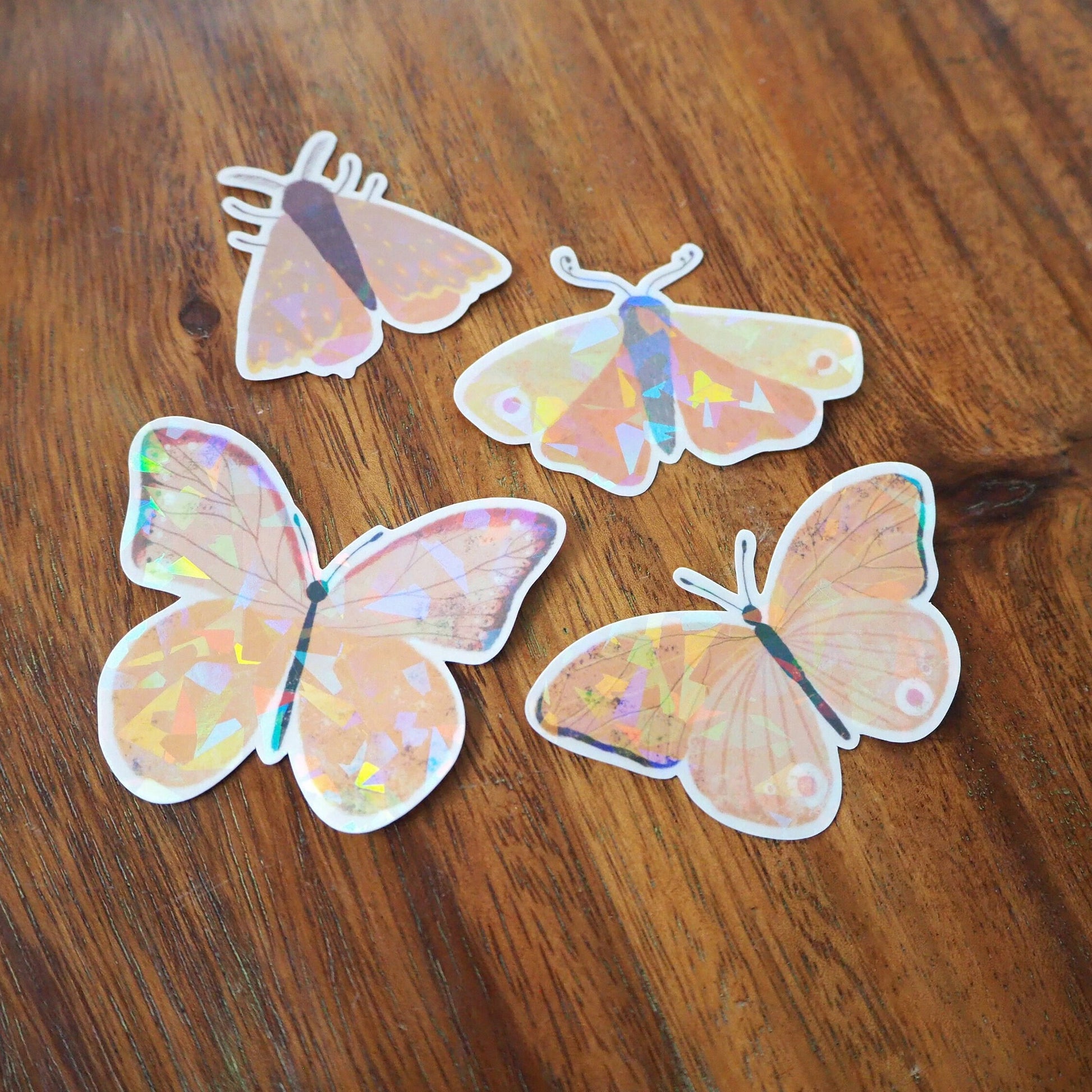 Check out this fabulous butterfly four-pack! Ranging from 1.75 to 2.75 inches, these beauties bring a dash of magic to any surface. Opt for the holographic shimmer or the crystal-clear finish - these vinyl stickers are perfect for your water bottle, laptop, or anywhere you need a pop of shimmer!