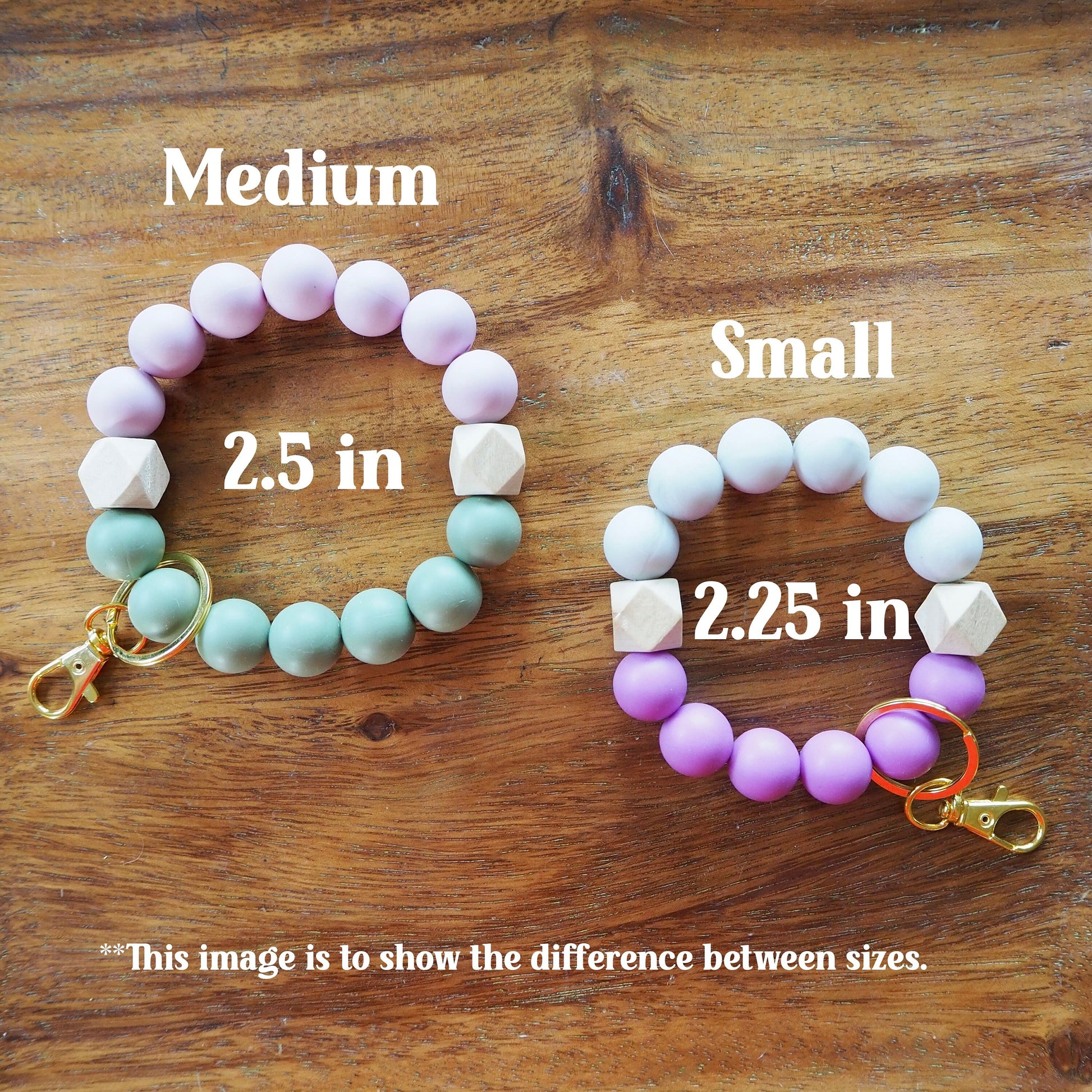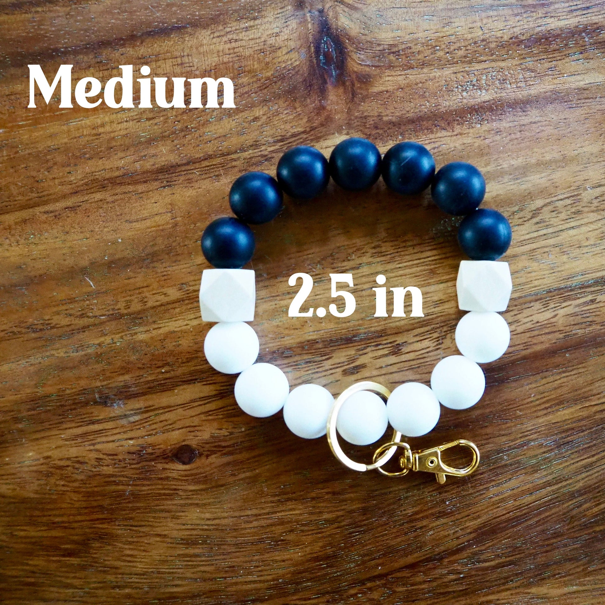 With a stretchy, durable string, these wristlets are comfy to wear and super functional. This wristlet comes in the medium size. You can check my other listings for the small size.